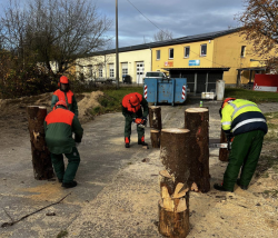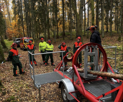 Am zweiten Tag ging es praktisch zur Sache: Im Katastrophenschutzlager standen Schnittübungen am liegenden Holz auf dem Programm.